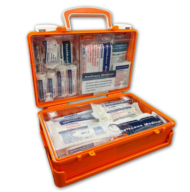1-Hëllef-Këscht mat Wandhalterung, Dübel a Schrauwen gefëllt no der DIN 13157: